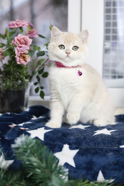 Предлагается Британский котёнок в окрасе золотая голубая шиншилла, девочка.